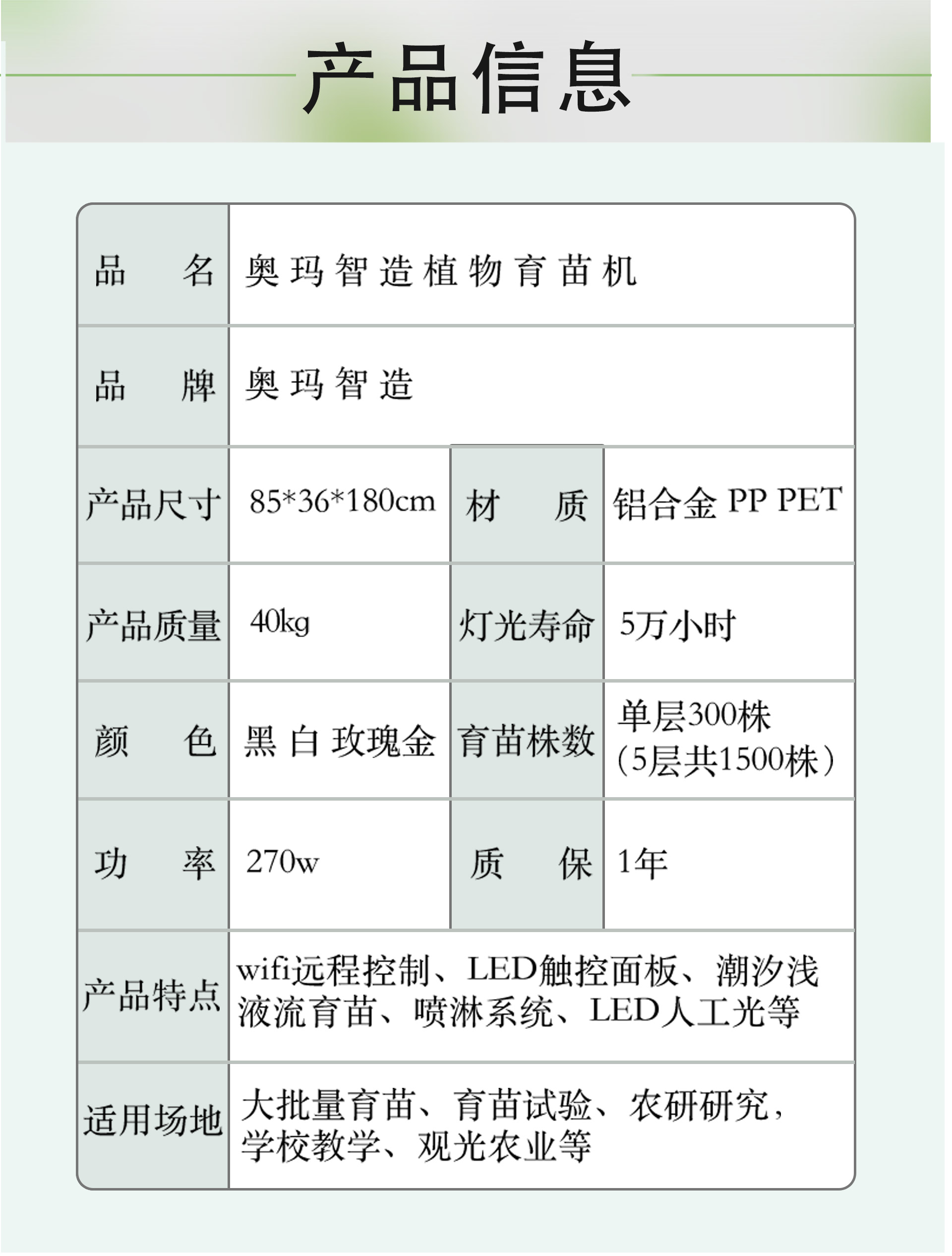 10. 種植柜規格為85cm*36cm*180cm(5層育苗);