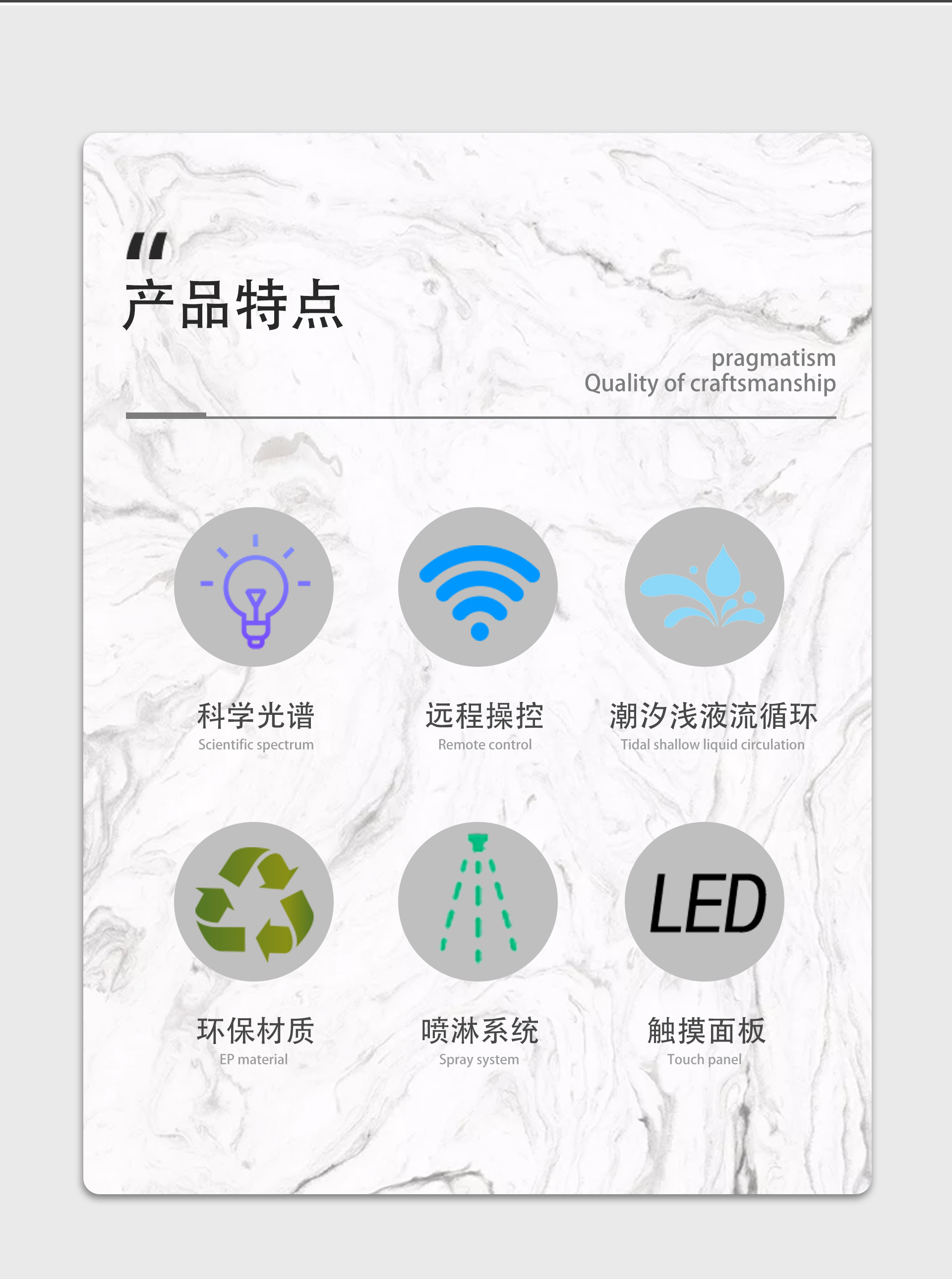 12. 配備手機遠程控制系統,可以實現遠程操作,定時開關燈以及水循環系統等功能。